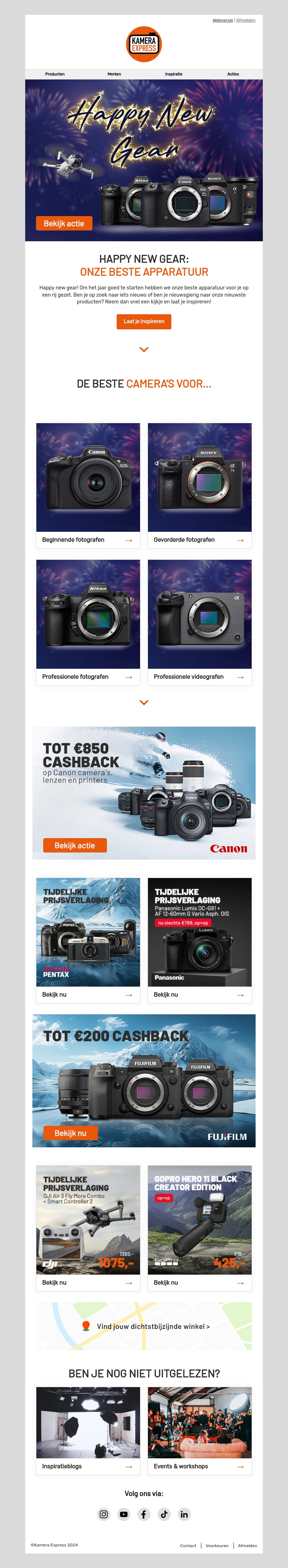 Bereid je voor op 2025 met de beste apparatuur van Kamera Express. Deze nieuwsbrief biedt inzicht in topcamera's voor elk type fotograaf en videograaf, van beginners tot professionals. Mis de tijdelijke prijskortingen en cashback-acties niet. Laat je inspireren door onze uitgebreide selectie en start het nieuwe jaar goed uitgerust. Vind ook inspiratieblogs en events voor extra tips en kennis.