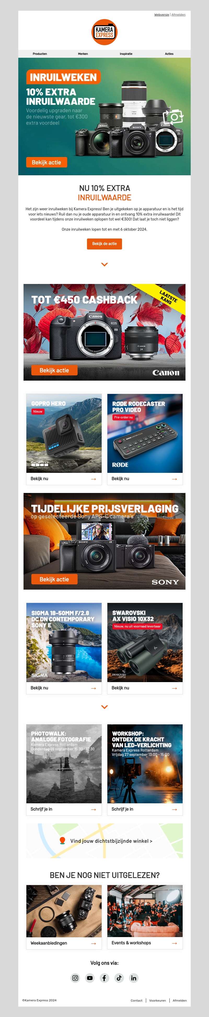 Inruilweken bij Kamera Express! Lever je oude apparatuur in en ontvang 10% extra inruilwaarde. Dit betekent meer voordeel voor jou, met besparingen tot €300. Mis deze kans niet en upgrade naar de nieuwste gear. Actie geldig tot 6 oktober 2024.