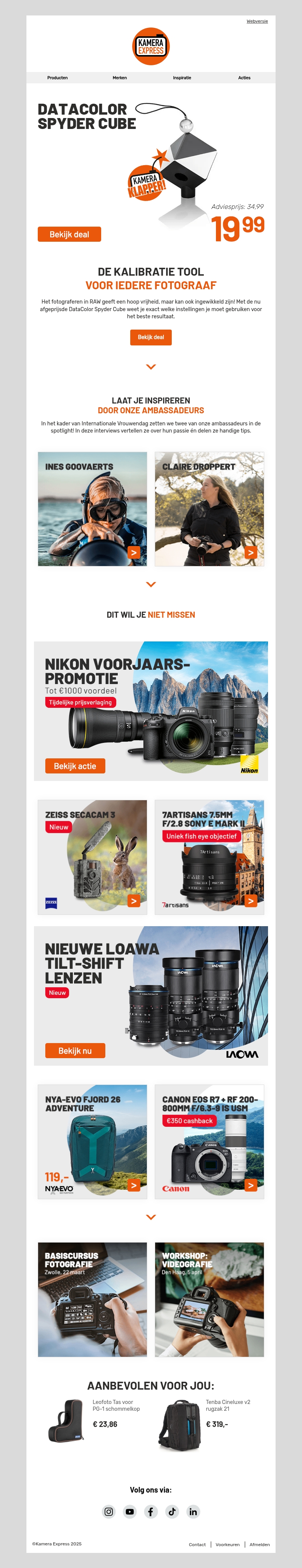 Behaal superieure resultaten met de Datacolor Spyder Cube, de essentiële kalibratietool voor iedere fotograaf. Ontdek nieuwe producten en laat je inspireren door onze ambassadeurs. Mis de Nikon voorjaarsactie niet met kortingen tot €1000! Bekijk ook de nieuwste lenzen en accessoires.