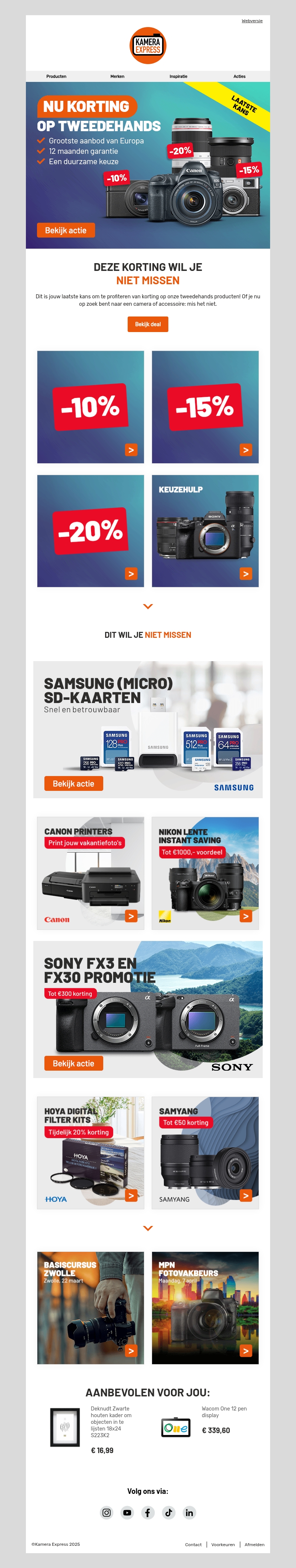 Mis deze kans niet om te profiteren van kortingen op onze tweedehands producten bij Kamera Express. Geniet van tot 20% korting op verschillende camera's en accessoires. Alle producten komen met 12 maanden garantie en zijn een duurzame keuze.