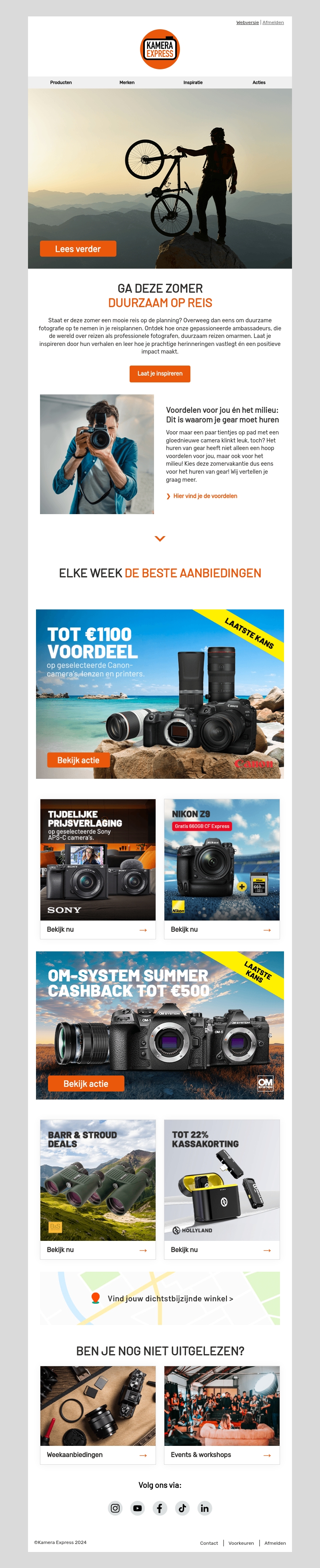 Deze zomer op reis? Overweeg om jouw camera-uitrusting te huren in plaats van te kopen. Ontdek onze voordelen van huren en bekijk de laatste aanbiedingen voor camera's en accessoires. Laat je inspireren door onze gids voor een duurzame fotografiereis.