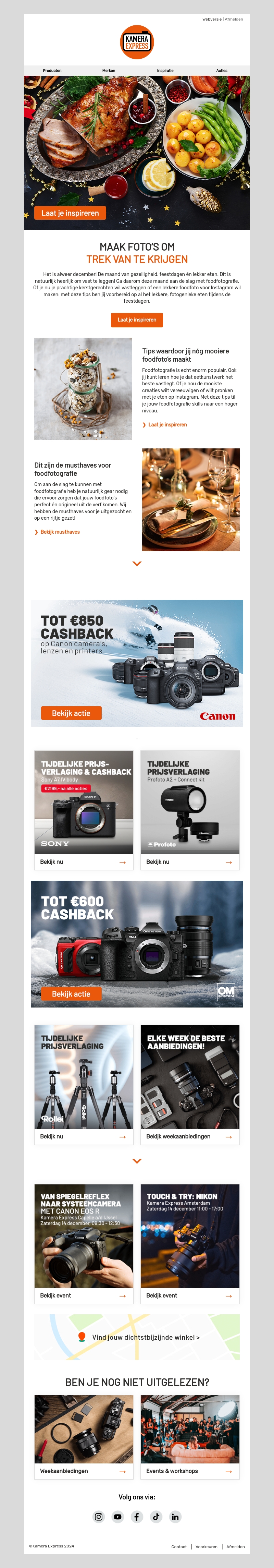 Leer hoe je verbluffende foodfoto's maakt voor de feestdagen met onze essentiële tips. Ontdek must-have items en profiteer van tijdelijke kortingen op camera's en lenzen. Mis deze kans niet om je fotografievaardigheden te verbeteren en te genieten van de magie van culinair beeldmateriaal.