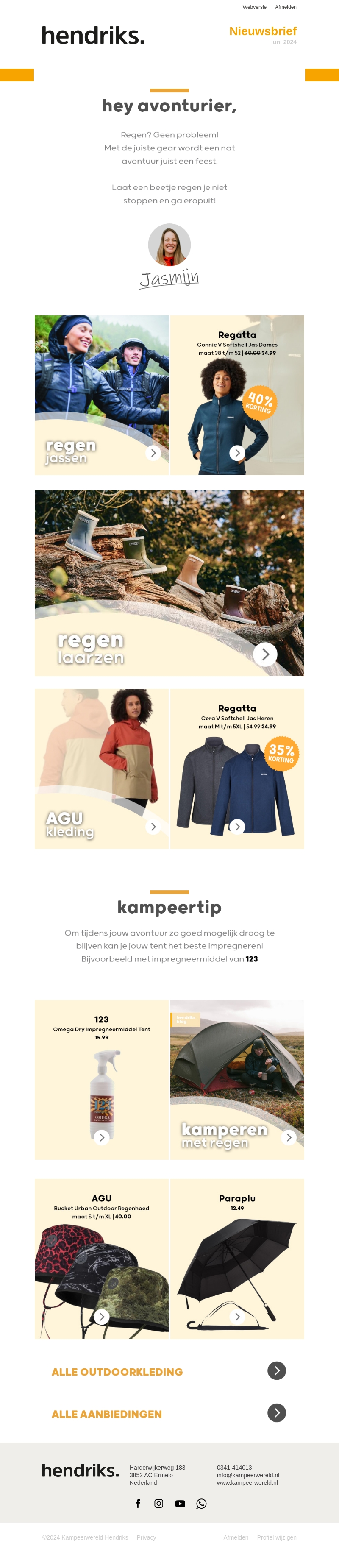 Regen? Geen probleem! Met de juiste gear wordt zelfs het natste avontuur een feest. Laat je niet tegenhouden door een beetje regen en ga erop uit! Ontdek onze nieuwste regenkleding, laarzen en handige kampeertips.