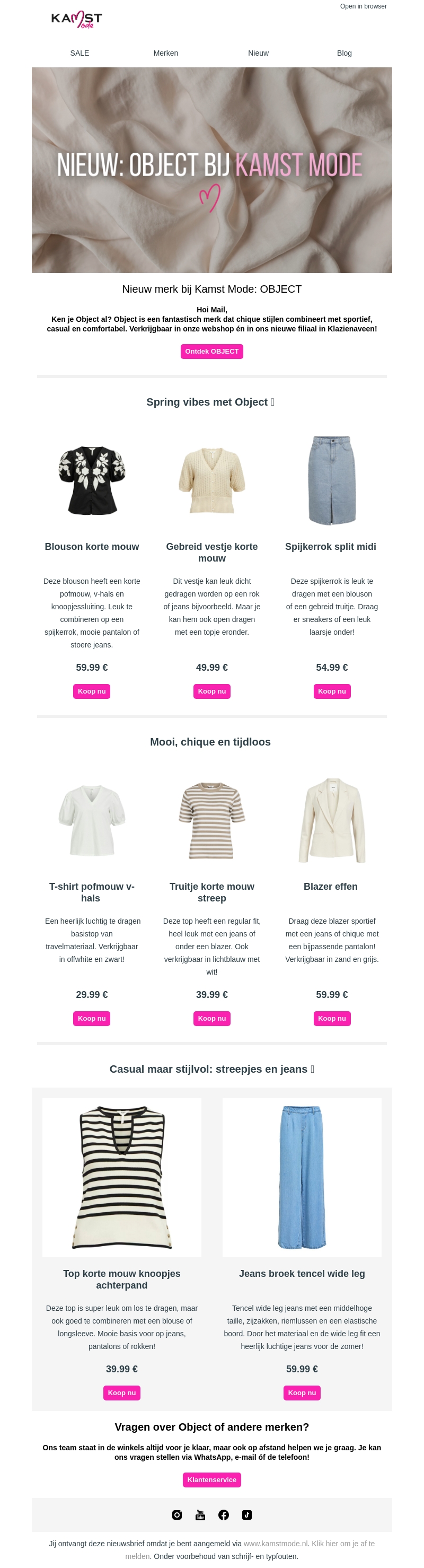 Kamst Mode presenteert met trots OBJECT, een merk dat chique en casual stijlen combineert. Ontdek prachtige blousons, vesten en spijkerrokken voor diverse gelegenheden. Perfect voor een stijlvolle en comfortabele look. Bezoek onze webshop of kom langs bij onze nieuwe vestiging.