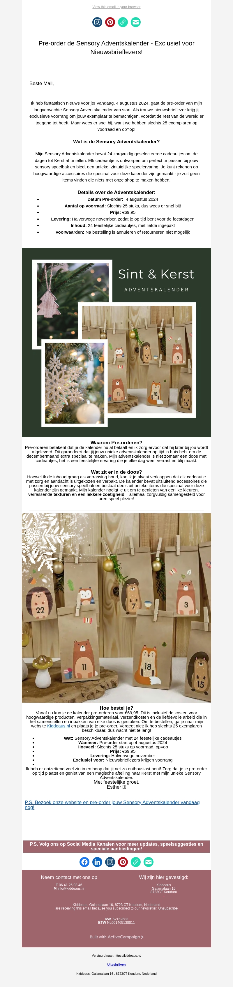 Ontdek de Sensory Adventskalender en geniet van 24 zorgvuldig geselecteerde cadeautjes met een verschil! Exclusief voor nieuwsbrieflezers, biedt deze kalender verrassende texturen en geuren om jouw feestdagen extra speciaal te maken. Bestel nu en mis het niet!