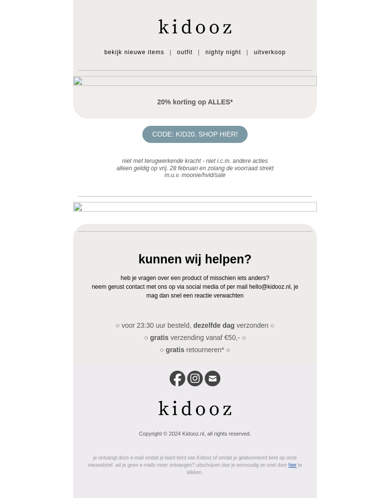 Bespaar nu 20% op al je favoriete items bij Kidooz dankzij onze speciale kortingsactie. Gebruik de code KID20 om te genieten van deze aanbieding. Geldig tot 28 februari of zolang de voorraad strekt. Wacht niet te lang, want de voorraad is beperkt!
