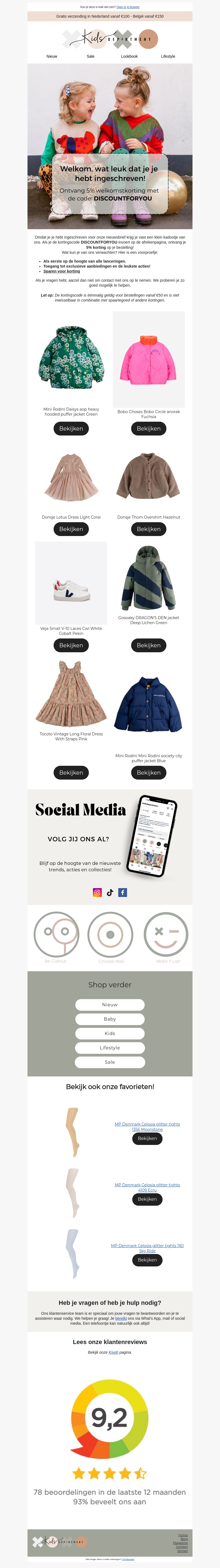 Welkom bij Kids Department! Profiteer van een welkomstkorting van 5% met de code DISCOUNTFORYOU. Ontdek de nieuwste mode voor kinderen, van schattige truitjes tot hippe sneakers en jassen. Volg ons ook op social media voor de laatste updates en trends. Vergeet niet de favoriete items van het seizoen te bekijken!