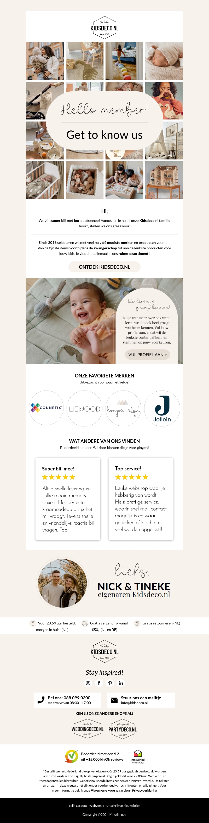 Welkom bij Kidsdeco.nl, waar we sinds 2016 de speciaalste items voor jou selecteren. Of je nu op zoek bent naar kraamcadeaus of kinderkamer accessoires, wij staan voor je klaar. Ontdek onze favoriete merken en geniet van snelle levering. Beoordeeld met een 9.1 door onze klanten. Meld je profiel aan om gepersonaliseerde content te ontvangen. We zijn blij je te verwelkomen!