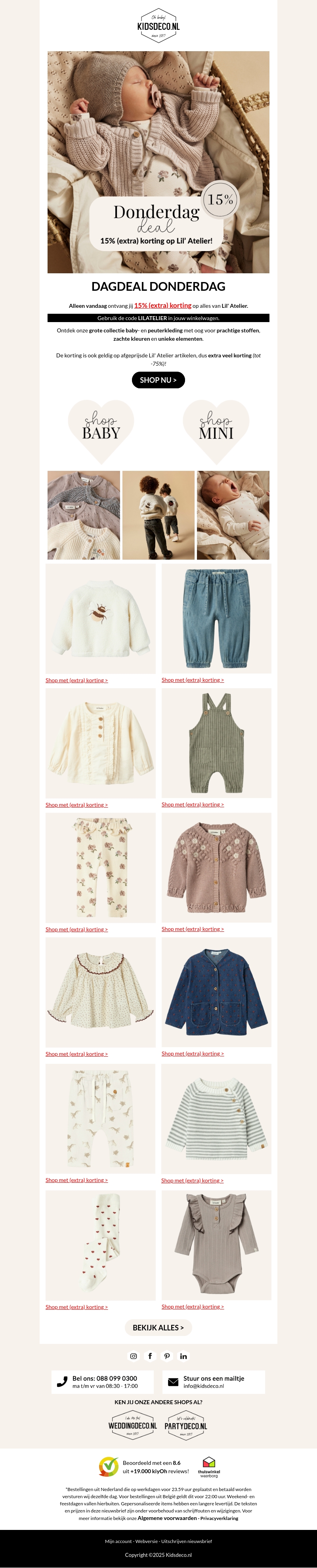 Ontvang vandaag maar liefst 15% extra korting op de nieuwste collectie van Lil' Atelier bij Kidsdeco. Mis deze exclusieve dagdeal niet en vul je winkelmandje met prachtige, duurzame kinderkleding. Perfect voor elke kleine stijlbewuste ontdekkingsreiziger.
