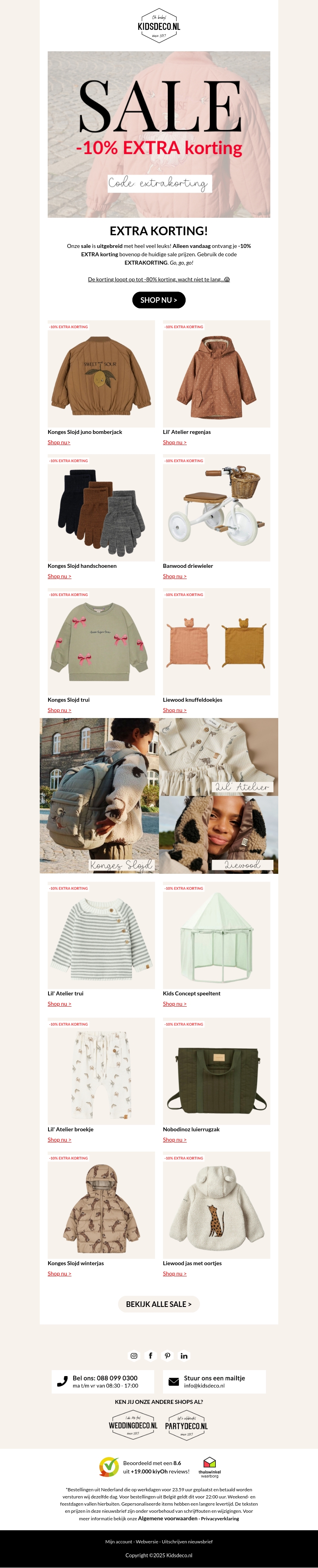 Bezoek onze speciale sale bij Kidsdeco.nl met extra korting! Ontdek een breed scala aan kinderkleding en accessoires. Mis deze fantastische kans niet en ontvang 10% EXTRA korting bovenop de huidige prijzen. Gebruik kortingscode 'EXTRA10'. Winkel nu en bespaar!