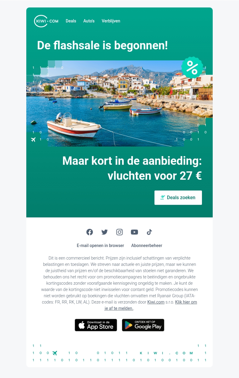 Pak nu jouw kans met vluchten vanaf slechts 27 €. Deze speciale aanbieding is slechts korte tijd beschikbaar, dus wacht niet te lang. Verken prachtige bestemmingen wereldwijd en geniet van scherpe prijzen. Boek snel via onze gebruiksvriendelijke app. Blijf op de hoogte van nieuwste deals en kortingen. Mis deze vluchtdeals niet en reis voordelig!
