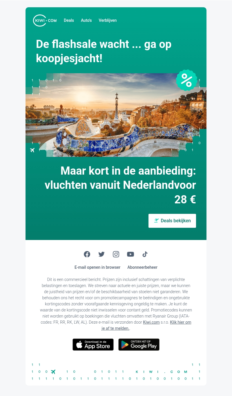 Vrolijke Kiwi-maandag! We bieden je vandaag een korting aan, exclusief voor de Kiwi.com-app