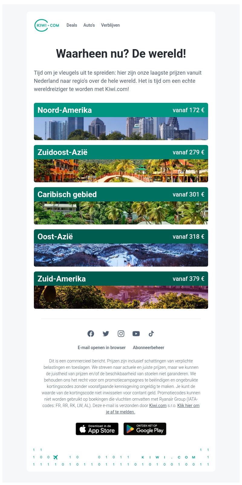 Vrolijke Kiwi-maandag! We bieden je vandaag een korting aan, exclusief voor de Kiwi.com-app