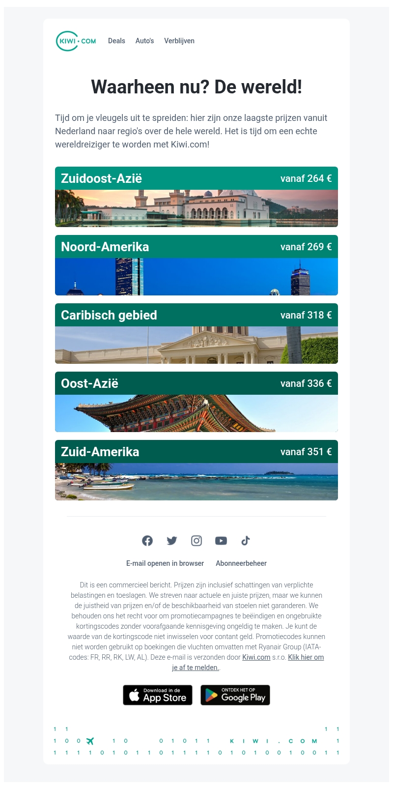 Vrolijke Kiwi-maandag! We bieden je vandaag een korting aan, exclusief voor de Kiwi.com-app