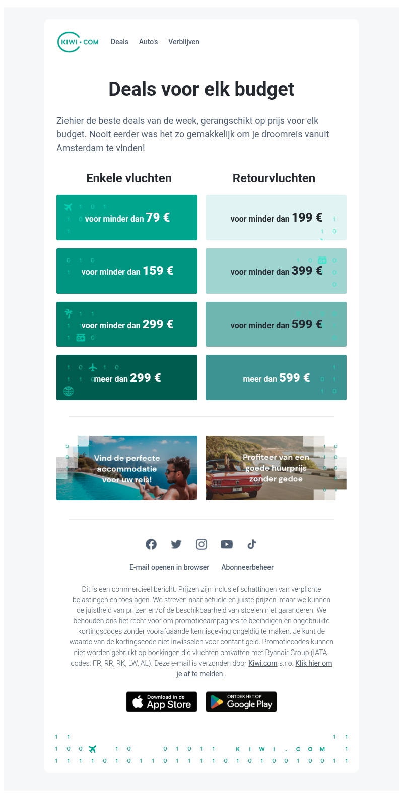 Vrolijke Kiwi-maandag! We bieden je vandaag een korting aan, exclusief voor de Kiwi.com-app