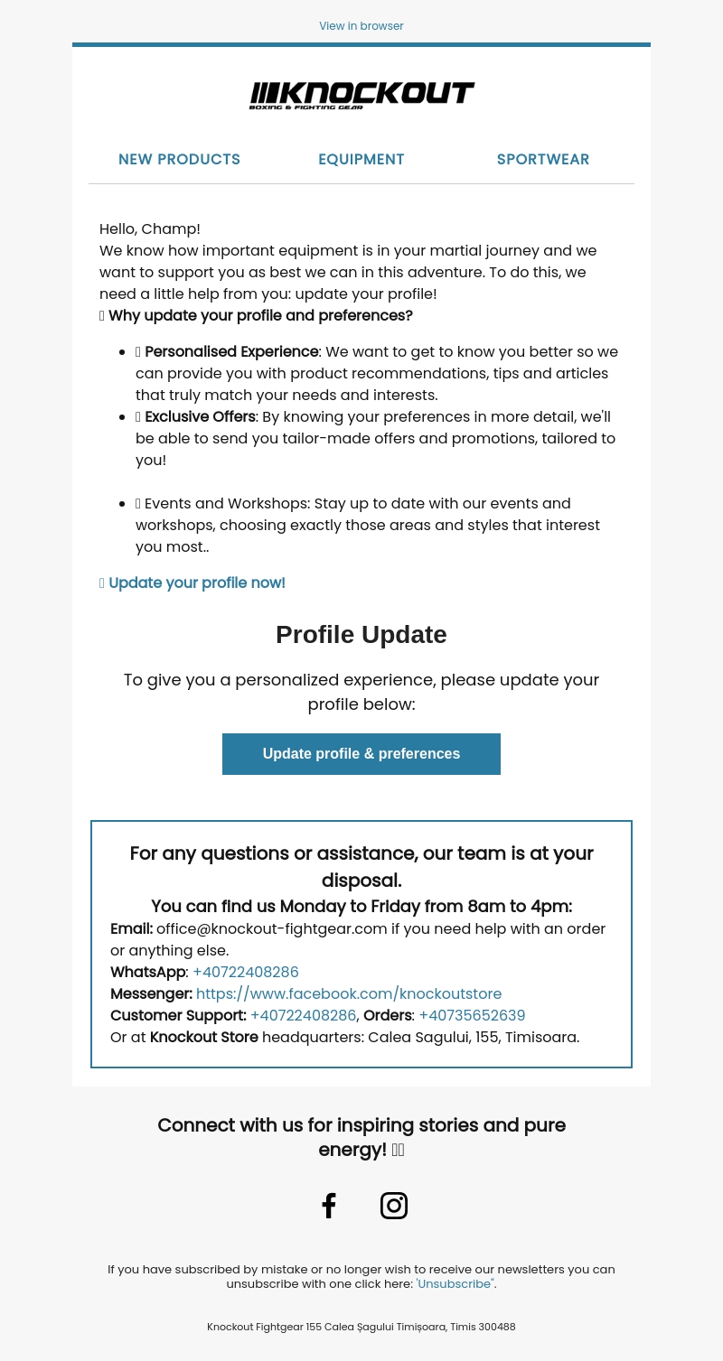 Bij Knockout begrijpen we hoe belangrijk de juiste uitrusting is voor jouw boksreis. Update je profiel en ontvang gepersonaliseerde aanbevelingen en exclusieve aanbiedingen. Blijf op de hoogte van onze evenementen en workshops.