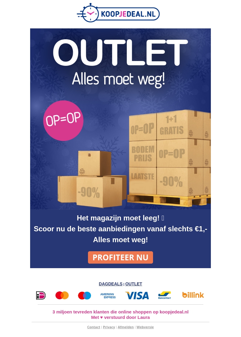 Het magazijn moet leeg bij Koopjedeal.nl! Profiteer nu van de beste aanbiedingen vanaf slechts €1. Alles moet weg, dus wees er snel bij voordat alles op is. Bestel direct en geniet van hoge kortingen tot 90%.