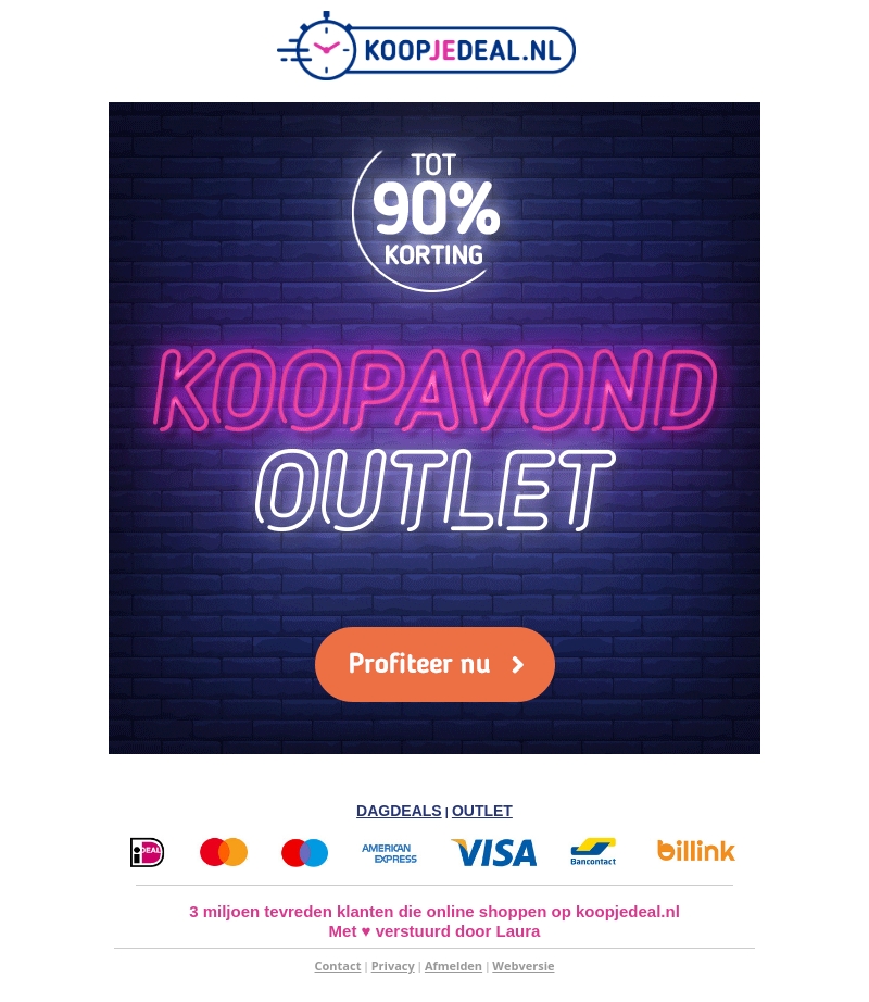 Geniet van enorme kortingen tijdens onze koopavond outlet. Met deals tot 90% korting kun je de beste koopjes scoren. Mis deze kans niet om jouw favoriete items met een geweldige korting te bemachtigen. Winkel nu en profiteer van deze exclusieve avondaanbiedingen. Bezoek onze website om te zien wat er allemaal in de aanbieding is en shop de beste prijzen.