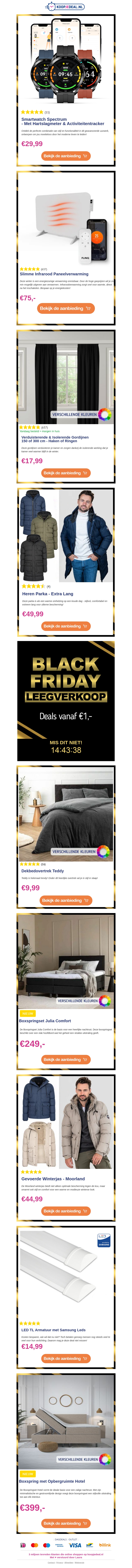 Beleef de ultieme shoppingervaring met onze Mega Black Friday kortingen. Profiteer van ongekende deals op smart watches, verwarming, gordijnen en meer. Ontdek nu de beste aanbiedingen en bespaar flink op populaire producten voor huis en mode. Mis het niet en grijp jouw korting vandaag nog!