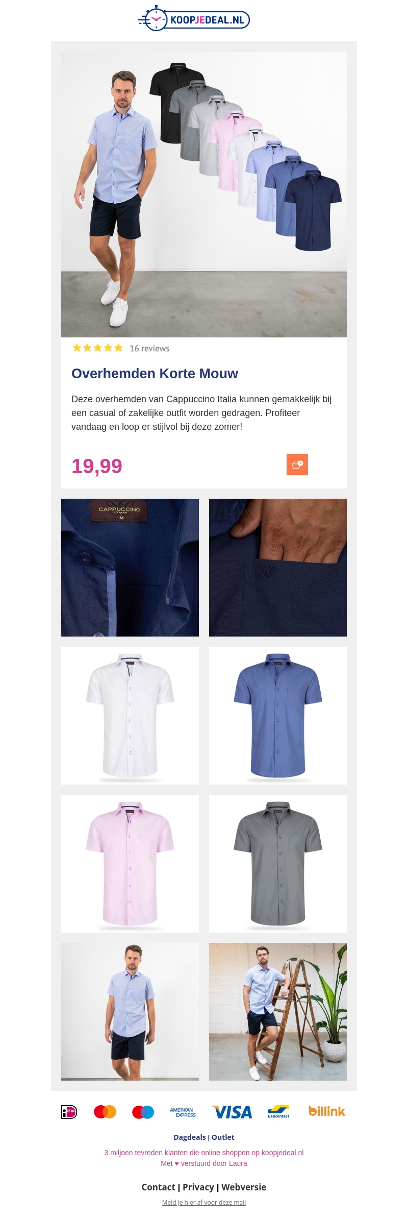 Deze stijlvolle overhemden van Cappuccino Italia zijn perfect voor zowel casual als zakelijke outfits. Verkrijgbaar in diverse kleuren voor slechts €19,99. Ga modieus de zomer in en profiteer nu!
