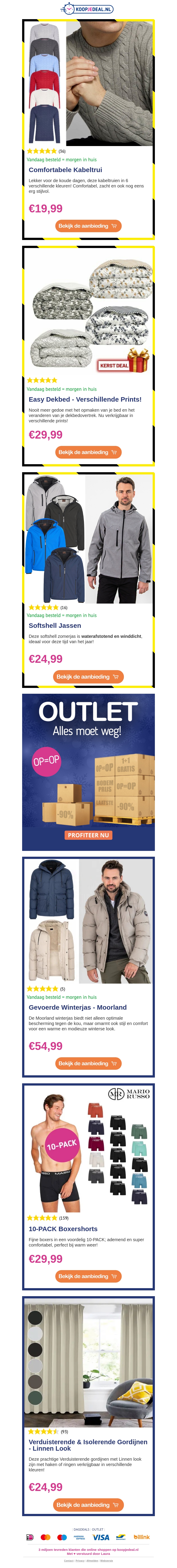Mis de kans niet om te profiteren van onze grote uitverkoop. Van comfortabele kabeltruien tot luxe boxershorts, de kortingen zijn enorm. Ontdek verschillende stijlen en geniet van de beste prijzen op onze collectie. Shop nu en verzeker jezelf van de beste deals voordat ze weg zijn!