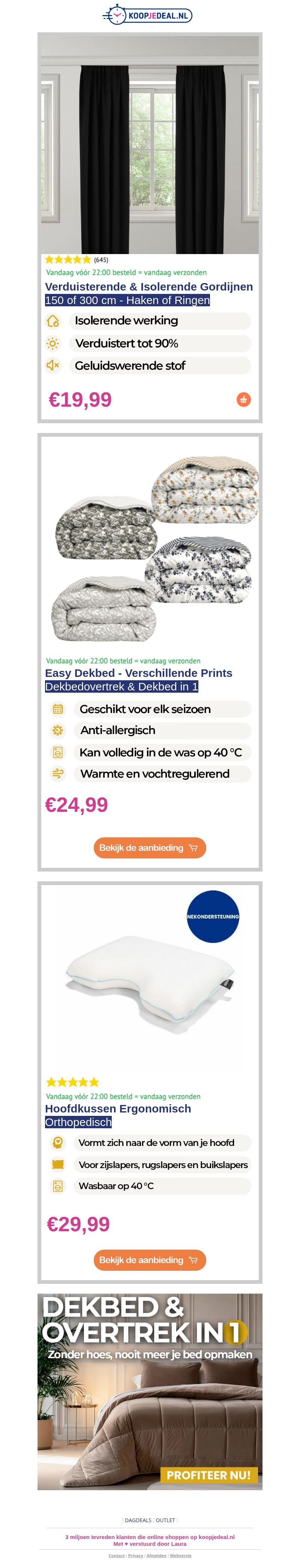 ACTIE: Isolerende Gordijnen €19,99 ✨ | Easy Dekbed €24,99 😴 | Orthopedisch Hoofdkussen €29,99 🩻