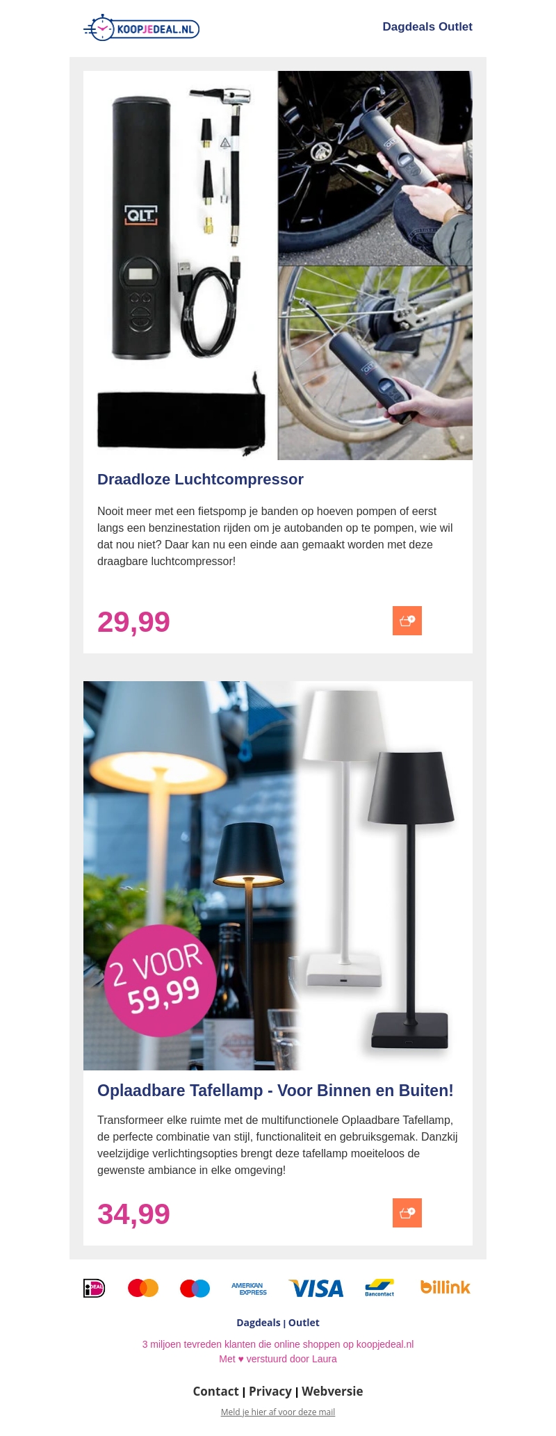 Laat deze kans niet voorbijgaan! Profiteer van scherpe aanbiedingen zoals de draadloze luchtcompressor voor slechts 29,99 en de veelzijdige oplaadbare tafellamp voor binnen en buiten voor 34,99. Perfect voor thuis en onderweg!