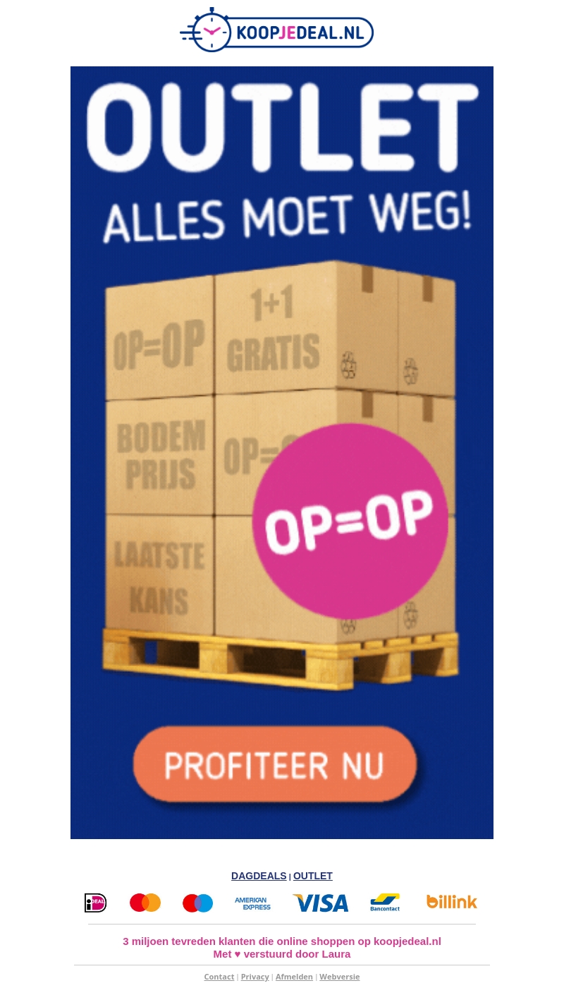 De outlet van Koopjedeal is aangevuld met topdeals. Ontdek ongekende kortingen en geniet van 1+1 gratis aanbiedingen. Alle producten moeten weg, dus mis deze kans niet. Bekijk nu ons uitgebreide assortiment en sla je slag. Wees er snel bij, want op=op. Shop vandaag nog en profiteer!