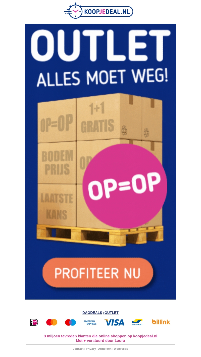 Onze outlet is aangevuld met fantastische nieuwe deals! Van bodemprijzen tot 1+1 gratis acties, alles moet weg. Wees er snel bij, want OP=OP! Profiteer nu van deze geweldige aanbiedingen en bespaar flink.