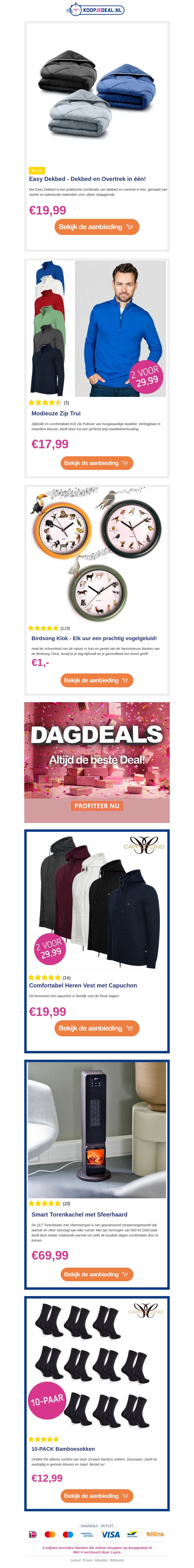 Ontvang de beste deals op diverse producten, van comfortabele kleding tot unieke klokken. Geniet van kortingen die je niet wilt missen. Bekijk nu de verrassende aanbiedingen en profiteer voor het te laat is!