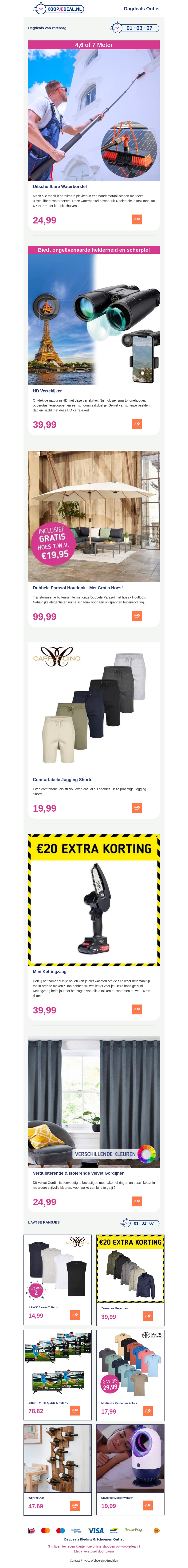 Mis deze geweldige deals en aanbiedingen niet! Van praktische waterborstels en krachtige verrekijkers tot stijlvolle tuinmeubelen en comfortabele jogging shorts, we hebben voor ieder wat wils. Profiteer nu van exclusieve kortingen en de beste prijzen.
