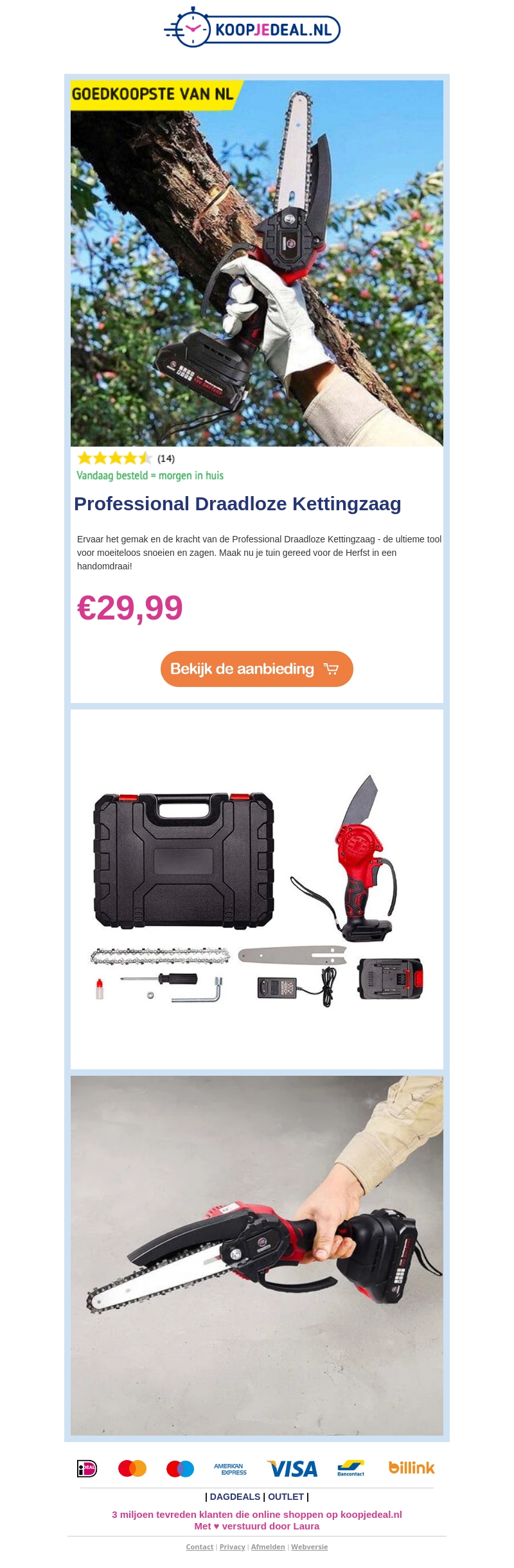 Krijg maximale flexibiliteit en kracht met de Draadloze Mini Kettingzaag. Perfect voor snel en eenvoudig snoei- en zaagwerk in je tuin. Bestel vandaag en heb het morgen al in huis voor slechts €29,99.