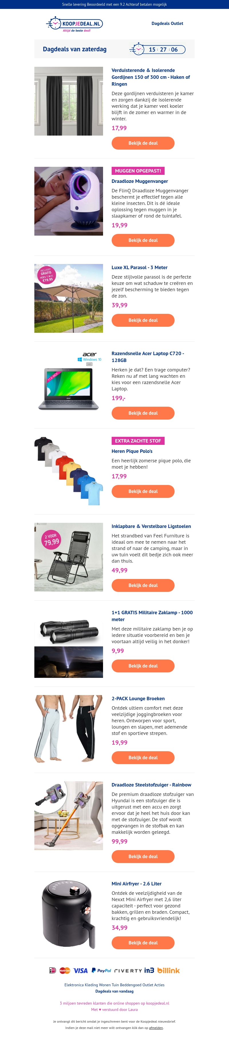 EXTRA weekend korting! π Verduisterende Gordijnen - β¬17,99 π€ | Draadloze Muggenvanger - β¬19,99 π¦