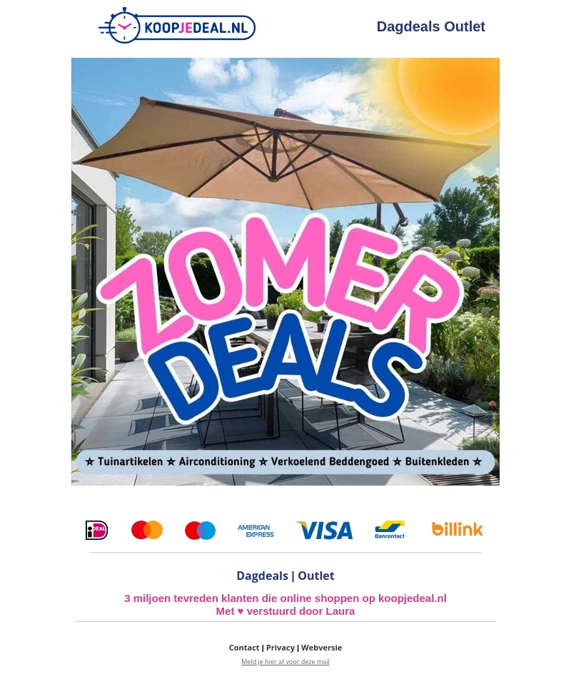 Profiteer van de zomerdeals bij Koopjedeal.nl. Ontdek de beste prijzen op tuinartikelen, airconditioning, verkoelend beddengoed en buitenkleden. 3 miljoen tevreden klanten gingen u voor. Met ♥ verstuurd door Laura.
