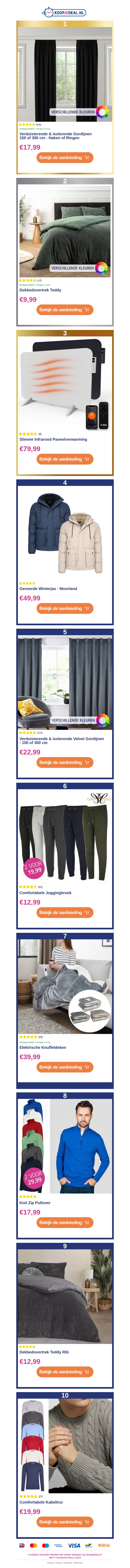 Laat je betoveren door onze nieuwste kortingen! Van stijlvolle gordijnen tot comfortabele jassen, we hebben alles wat je nodig hebt voor een winterse upgrade. Mis deze kans niet om je huis knusser te maken en je garderobe te verfrissen met geweldige deals.