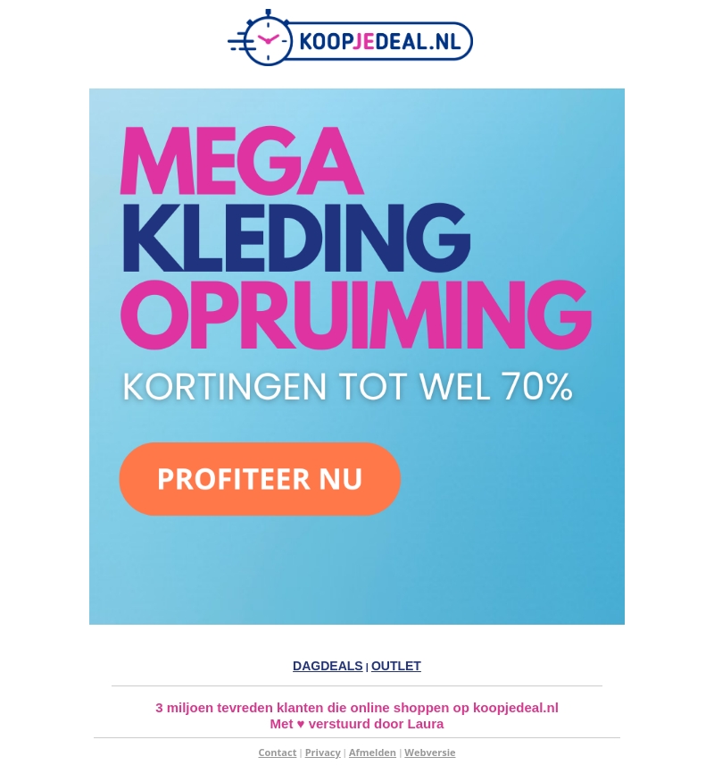 Profiteer van de Mega Kleding Opruiming bij Koopjedeal.nl. Ontvang nu ongelooflijke kortingen tot wel 70% op diverse kledingstukken. Mis deze kans niet om je garderobe aan te vullen met modieuze items voor een fractie van de prijs. Actie is tijdelijk, dus wees er snel bij!