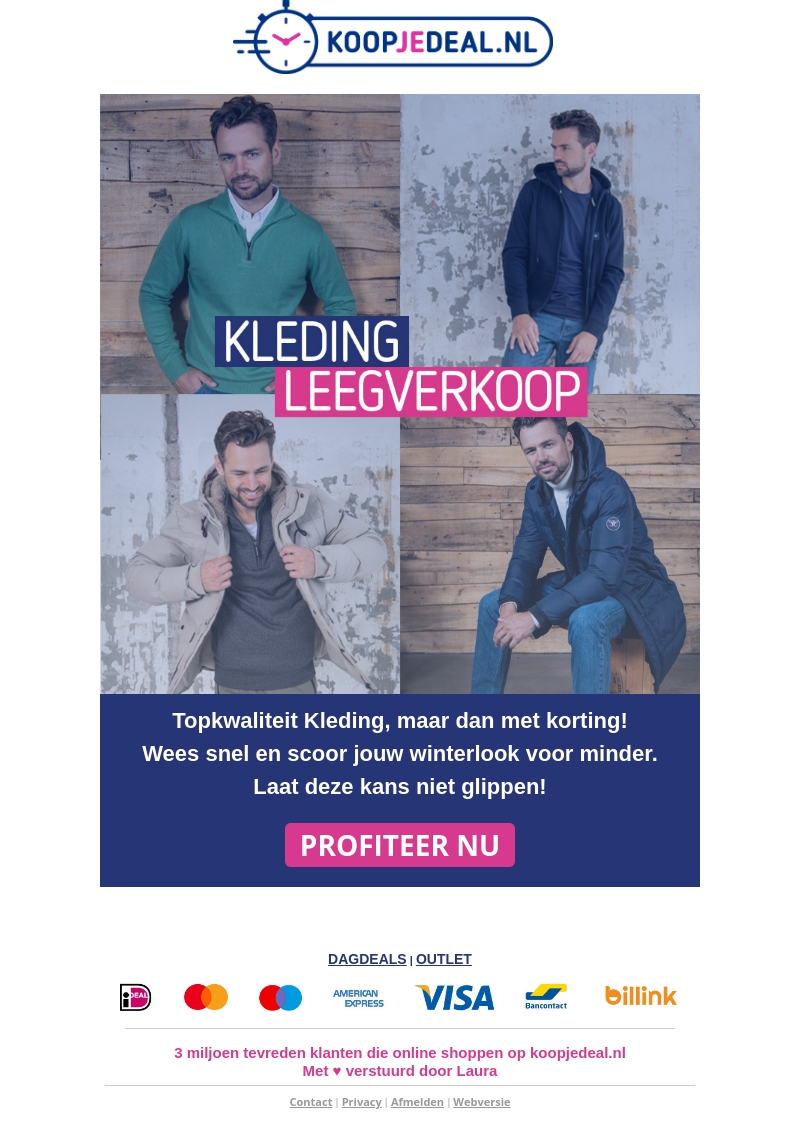 Koopjedeal.nl presenteert een spectaculaire kledinguitverkoop met hoge kortingen. Ontdek topkwaliteit kleding voor wintermode en profiteer van de aanbiedingen. Wees snel, want de voorraad is beperkt. Laat deze kans niet glippen en vernieuw je garderobe nu. De beste merken tegen de laagste prijzen. Shop veilig online en geniet van snelle levering.