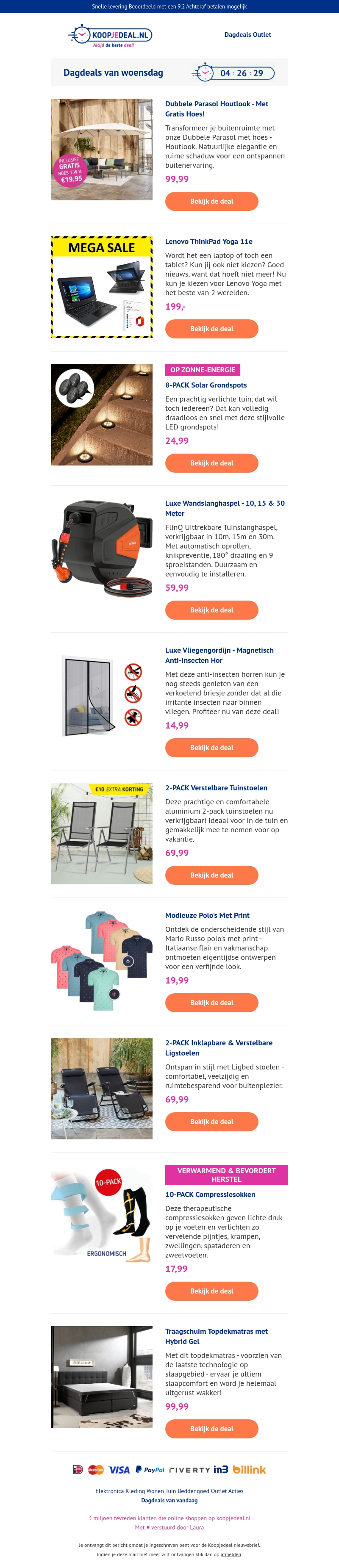 Mis deze koopavond niet met ongelooflijke aanbiedingen zoals 8 Solar Grondspots voor slechts β¬24,99 en 2-PACK Verstelbare Ligstoelen voor β¬69,99. Ontdek ook andere geweldige producten zoals de Lenovo ThinkPad Yoga 11e voor β¬199,99 en een luxe parasol houthoek met gratis hoes voor β¬99,99. Bekijken en profiteren van deze deals voor uw huis en tuin.