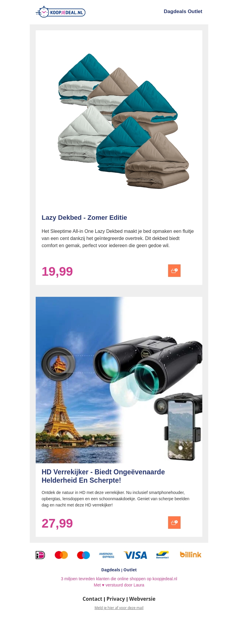 Ontdek de nieuwste zomer deals met onze Lazy Dekbed Zomer Editie, ideaal voor een zorgeloze nachtrust. Bovendien bieden we nu de HD Verrekijker aan, perfect voor het ontdekken van de natuur in haarscherp detail. Mis deze unieke aanbiedingen niet!