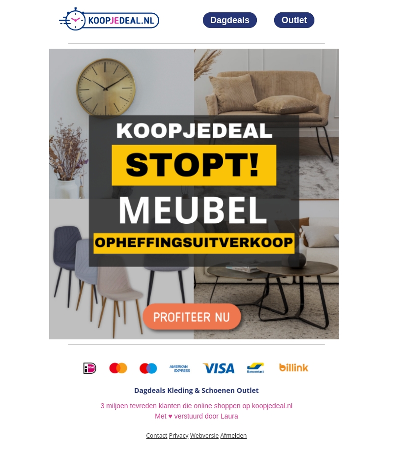 Koopjedeal stopt met meubelen en organiseert een grote opheffingsuitverkoop. Dit is je kans om luxe meubels aan te schaffen voor bodemprijzen. Van stijlvolle stoelen tot comfortabele banken, alles moet weg! Mis deze unieke kans niet en profiteer nu!
