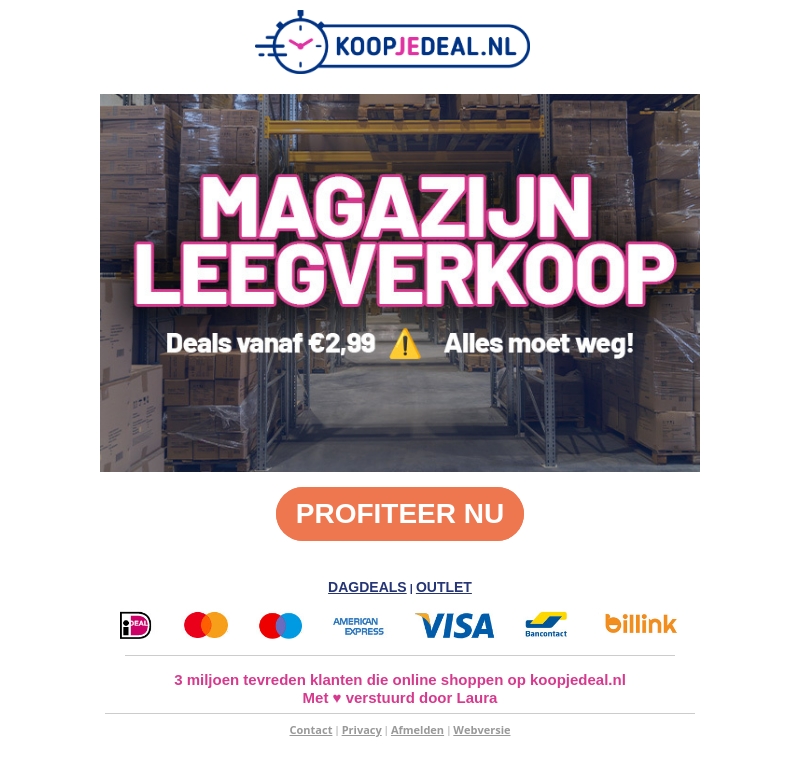 De magazijn leegverkoop van Koopjedeal.nl biedt ongelofelijke deals vanaf slechts β¬2,99! Het is een uitverkoop die je niet wilt missen, want alles moet weg. Of je nu op zoek bent naar elektronica, kleding of huishoudelijke artikelen, er is voor ieder wat wils. Profiteer nu van scherpe kortingen door vandaag nog online te shoppen. Mis deze unieke kans niet om geweldige producten voor lage prijzen te scoren.