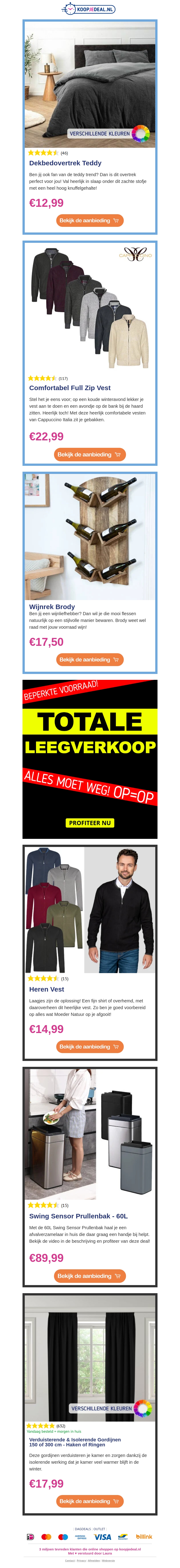 NU: Dekbedovertrek Teddy €12,99 🧸| Comfortabel Vest €22,99 🔥| Wijnrek Brody €17,50🍾