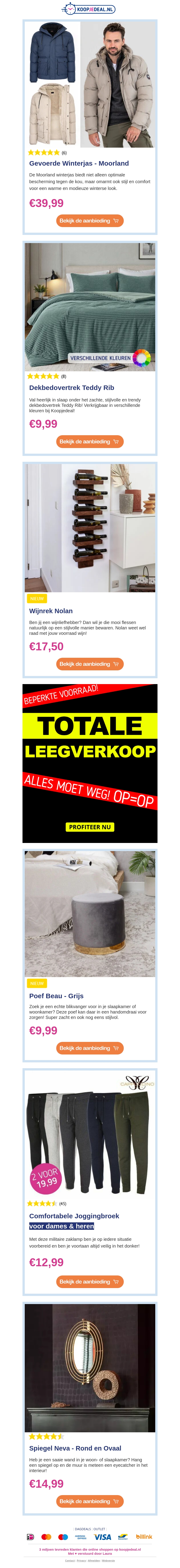 NU: Gevoerde Winterjas €39,99 🧥 | Dekbedovertrek Teddy Rib €9,99 🧸 | Wijnrek Nolan €17,50 🍷
