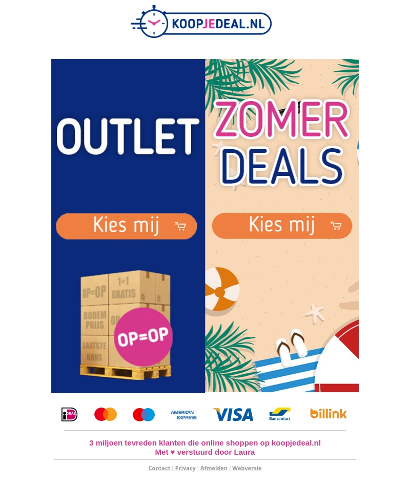 Koopjedeal.nl presenteert fenomenale deals in hun Outlet en Zomer Deals. Kies uit superkortingen en unieke producten. OP=OP, dus wees er snel bij! Geniet van kortingen op je favoriete zomerproducten. Bekijk het nu!