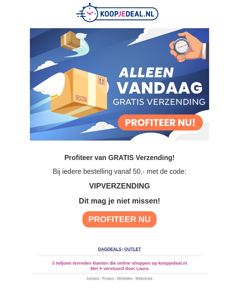 Koopjedeal biedt alleen vandaag gratis verzending aan bij bestellingen vanaf 50,-. Mis deze kans niet en gebruik de speciale kortingscode: VIPVERZENDING. Geniet van snelle en gratis levering en shop de beste deals. Bestel nu en ervaar het gemak van gratis verzending.