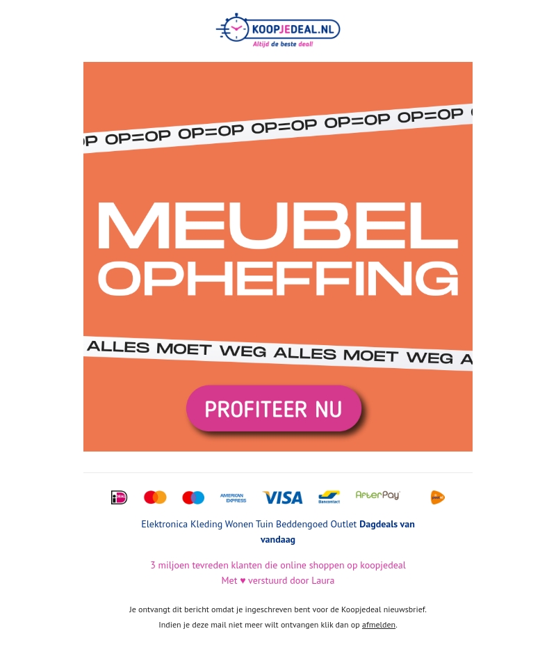 Ontdek de grote meubelopruiming bij Koopjedeal. Scherp geprijsde meubels gaan nu voor een spotprijs weg. Wees er snel bij en profiteer van fantastische kortingen op ons uitgebreide meubelaanbod. Grijp deze kans om je interieur een nieuwe look te geven voordat alles op is.