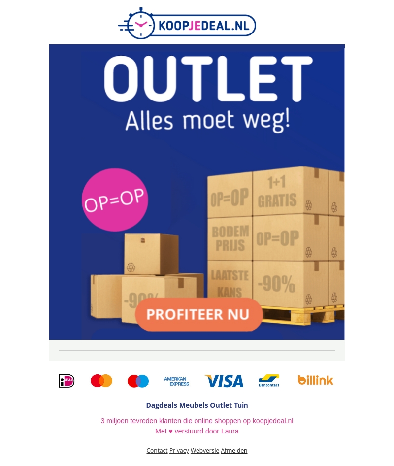 Ontdek de grootste outlet verkoop op Koopjedeal.nl. Alles moet weg - OP=OP! Profiteer nu van bodemprijzen en exclusieve kortingen. Beperkte voorraad, dus wees er snel bij!