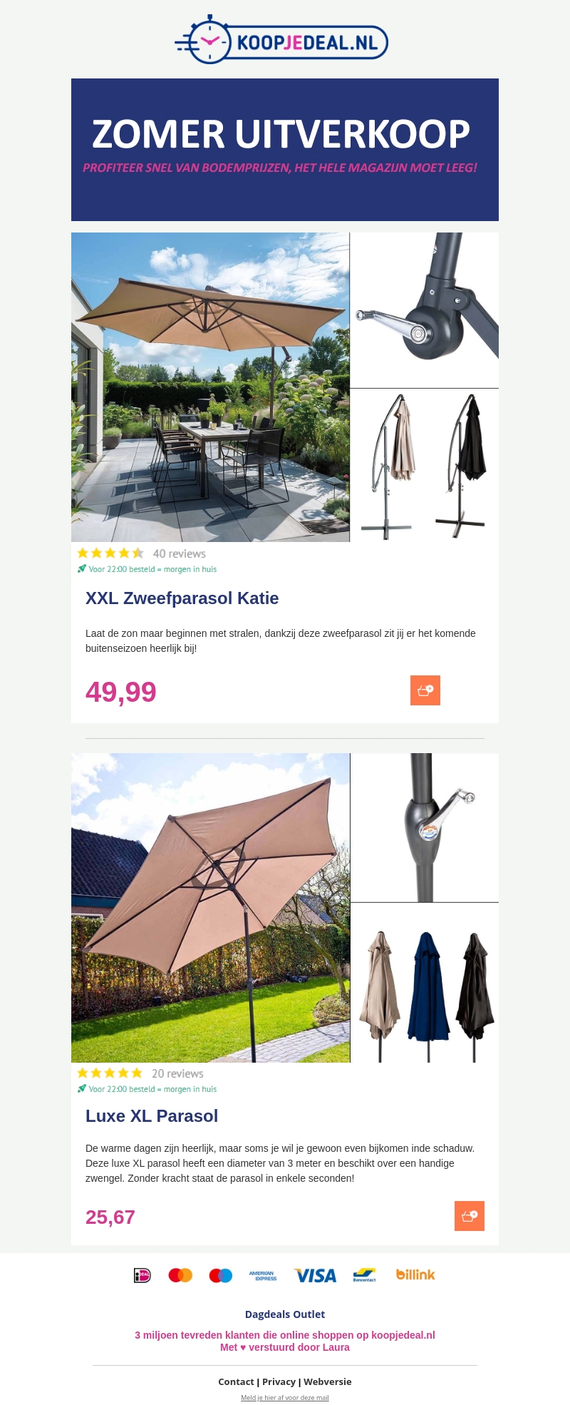 Parasols tegen inkoopprijzen!