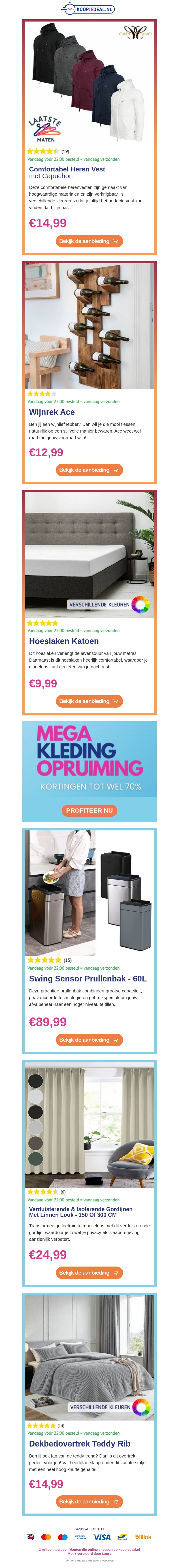RE: Comfortabel Vest €14,99 ⭐ | Wijnrek Ace €12,99 🍷 | Hoeslaken Katoen €9,99 💤