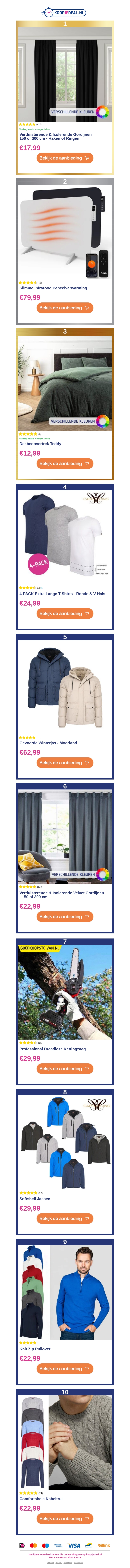 Verwen jezelf met geweldige deals op huis en mode artikelen. Van het verduisteren van gordijnen tot stijlvolle polo's, onze selectie biedt iets voor iedereen. Bekijk ook onze duurzame kettingzaag aanbieding. Mis het niet!